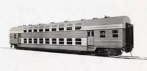The four trailers of the Dongfeng DMU were all double deck passenger cars, with the design name of 双2, numbered SK 0001–0004. The carriage is of a welded structure, with overall dimensions similar to the Type 22 carriage, but it is 385 mm higher than the carriage, and has a lower ground clearance by 600 mm, at 270 mm. The cars weighed 47.5 tons and had a structural speed of 120 km/h. A feature of these passenger cars was that both the upper and lower decks had 16 support poles, carrying the weight of the upper deck but also adding strength to the car body. However, this design reduced space in the carriage, and made it difficult for passengers with luggage to move around easily.[2] When the car passed a renovation in 1969 with Hangzhou sector, all of the support poles were removed, while the staircase structure was strengthened, while the lower deck was fitted with an arch roof to support the weight of the upper deck. All later designs in China uses an arch structure to support the upper deck instead.[6]
