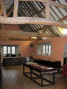 Some of the features of the house, along with tree-ring dating of the timbers in the roof, show that the Manor House was heavily modernised around 1618. It appears that at this time, the downstairs storerooms were converted into a kitchen and a parlour. A new roof was put on and the rooms upstairs were remodelled with a new internal staircase. Externally, the most obvious addition from this period are the large rectangular mullioned windows. At this time, the house was probably owned by John Digby of Seaton, whose nephew, Sir Everard Digby was a friend of Robert Catesby and was executed in 1606 for his part in the Gunpowder Plot.