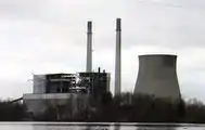- Société d'Electricité de la Campine, an electric power plant on black coal founded in 1929. It originally had a capacity of 20 MW. In 1956 the company was taken over by EBES which is now known as Electrabel. The power plant had two chimneys of 410 feet and a cooling tower of 246 feet. Both towers could be seen from far. The power plant was shut down in 2010 as it produced too much carbon dioxide. The premises were bought by VITO who deconstructed the power plant. On 10 July 2014 the chimneys and cooling tower were blown up with dynamite.[8][9][10]
