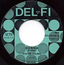 "Donna" is a song written by Ritchie Valens,[1] featuring the '50s progression.[2] The song was released in 1958 on Del-Fi Records.[3] Written as a tribute to his high school sweetheart Donna Ludwig, it was Valens' highest-charting single, reaching No. 2 on the Billboard Hot 100 chart the following year. ("Stagger Lee" by Lloyd Price was at number one.)[4]