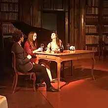 The drama has been analyzed by the literary critic Francesco D’Episcopo from The University of Naples Federico II in the volume Menotti Lerro. Tra Drammaturgia e Narrativa (Genesi: 2019). In addition the play has been the subject of a degree dissertation by a student, Sara Cudia, from the University of Palermo. The same text became later the basis for a critical book about the innovative figure of a female and bisexual Don Juan[5] with the title Donna Giovanna di Menotti Lerro. L'innovazione del mito (Zona:2020). The Trickster of Salerno, Donna Giovanna, has been quickly perceived by critics as a brilliant character[6] able to replace the outdated famous historical version that was, in fact, losing reasons to exist, due to profound changes occurring in our contemporary society's views of libertinism and seduction.[7] The new figure became popular after some fascinating representations: Florence (Biblioteca Marucelliana)[8] Milan (Teatro Fontana),[9] Naples (Teatro Sancarluccio) Borgo San Lorenzo (Villa Pecori Giraldi)[10] and Vallo della Lucania (Teatro Leo de Berardinis).[11] Furthermore, artists have dedicated operas at the new female libertine.[12][13]