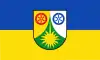 Both of the districts merged into the Donnersbergkreis had a wheel in their coat of arms, which are now also shown in the coat of arms of the new district. On the left is the red wheel of the Lords of Bolanden, taken from the Kirchheim coat of arms. The blue wheel on the right is the wheel of the Lords of Falkenstein, taken from the Rockenhausen coat of arms. The green field on the bottom with the peak symbolizes the Donnersberg, the highest elevation in the district, and the sun the importance of the sunny plains for viticulture.