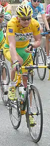 Despite being tested negative for doping before the Tour and seventeen times during the Tour, Michael Rasmussen was pulled from the race for violating team rules. According to Rabobank, he had told the UCI and the team that he was training in Mexico from June 4 to June 26, 2007. Italian cycling journalist and former cyclist Davide Cassani told a Danish television channel that he had seen Rasmussen on June 13 and 14 in the Dolomites in Italy.[34] When Rabobank team director Theo de Rooij confronted Rasmussen with this story, according to news reports he allegedly admitted the lie.[35] Rasmussen denied admitting this, however and told a Dutch newspaper (Algemeen Dagblad) "My career is ruined".[21][36][37] According to Team Rabobank spokesman Jacob Bergsma, when sponsor Rabobank learned of Rasmussen's deceit, they insisted that he be sent home immediately.[38]