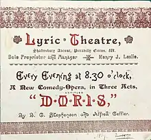 Doris is a "comedy opera" in three acts by Alfred Cellier, with a libretto by B. C. Stephenson. After the phenomenal success of Cellier and Stephenson's Dorothy (1886), the pair were hoping for another big hit. Doris turned out to be only modestly successful.