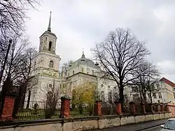 A number of other churches stood on the site of the current cathedral. A 13th century Dominican convent dedicated to St Mary Magdalene was located on the site of the present church. In 1704 a wooden church in honour of the Virgin Mary was built instead. On 16 April 1752 the cornerstone of a new stone church was laid by orders of Peter the Great. It was built on designs made by Nikolai Vasilyev. it was finished and consecrated on 28 January 1754. However, by 1762 the church became unsafe and in 1771 a church was built close by until renovations were made. In 1772, the bell tower was built. On 25 June 1775 both churches were destroyed by fire. [1]