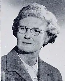 She left the Manchester area on retirement and died on 22 February 1975 at a nursing home in Leamington Spa. The funeral service was held on 27 February 1975 at St Michael and All Angels Church, Claverdon, Warwickshire, with cremation following at Oakley Wood Crematorium, near Leamington Spa.[10] Her WES obituary was written by fellow Manchester branch member and Metropolitan Vickers colleague, Isabel Hardwich.