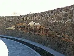 Notable locations in town include the Dorris Branch of the Siskiyou County Public Library, Dorris City Hall, Dorris Fire Department, two schools, the Siskiyou County Dorris-Tulelake Branch Courts and the Butte Valley Museum.[10] Dorris is home to what was once the country's tallest flagpole west of the Mississippi, and still the tallest west of the Rockies. It is 200 feet (60m) tall, and flies a flag 30 feet (9m) tall by 60 feet (18m) wide.[11] It was surpassed in 2002 by a larger 300 foot pole in Laredo, Texas[12] and in 2014 by a 400 foot pole in Sheboygan, Wisconsin.