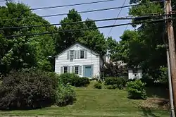 The Dorsey–Jones House is located south of the village center of Florence, on the north side of Nonotuck Street a short way east of Maple Street. It is a 1+1⁄2-story wood-frame structure, with a gabled roof and clapboarded exterior. It follows a plan known as "upright and wing", a common building plan of the period that was often used for millworker housing in the area. It is an L-shaped structure with a prominent front-facing gable end. The main entrance is in the rightmost of three bays on this section. A single-story ell extends to the right of this section, with an open porch across its front.[2]