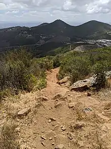 On a clear day, the peak offers views of distant places such as Mexico, Downtown San Diego, San Clemente Island, Catalina Island, the Palos Verdes Peninsula, the Santa Ana Mountains, and the San Bernardino Mountains. A telescope is located at the peak for use by visitors.