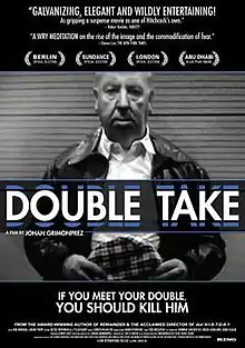 Double Take is a 2009 essay film, directed by Johan Grimonprez and written by Tom McCarthy. The plot is set during the Cold War and combines both documentary and fictional elements. The protagonist is a fictionalised version of Alfred Hitchcock. The backdrop of the film charts the rise of the television in the domestic setting and with it, the ensuing commodification of fear during the cold war.[1]