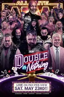 Double or Nothing featured nine professional wrestling matches that involved different wrestlers from pre-existing scripted feuds and storylines. Wrestlers portrayed heroes, villains, or less distinguishable characters in scripted events that built tension and culminated in a wrestling match or series of matches.[20] Storylines were produced on AEW's weekly television program, Dynamite, the supplementary online streaming show, Dark, and The Young Bucks' YouTube series Being The Elite.