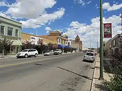 It was deemed significant as "the best example of a turn-of-the-century commercial and institutional center remaining in New Mexico. In addition to stores, offices and banks, the district housed various institutions of civic improvement, including the state's first city hall, an opera house (now demolished), a Masonic Temple and a YMCA. Its buildings retain the scale, space, and—to a large extent— the architectural quality of the district as it had developed by 1922. The buildings represent a sometimes provincial, though competent, realization of a variety of architectural styles originating in the East and California. The district contains a significant collection of buildings (at least four and perhaps as many as eight) designed by the important, though little studied, Western architects, Rapp and Rapp. Of secondary significance, the district contains three examples of local stonecarving and, in addition, represents a typical example of railroad-era, speculative town planning."[2]