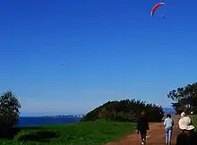 Paraglider and hang glider pilots frequently launch from a cliffside spot 200 meters from the entrance, taking advantage of frequent updrafts as onshore winds are directed nearly vertically by the cliffs. With sufficient winds, pilots have reported staying aloft for hours, traversing the cliff line numerous times before landing either at the launch point itself or on the beach below. As many as 8 paragliders have been in the air at one time during exceptionally good wind conditions.
