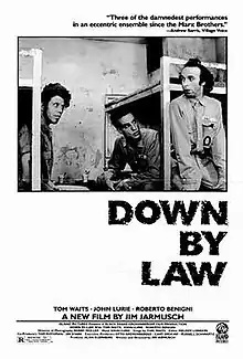 Down by Law is a 1986 American black-and-white independent film written and directed by Jim Jarmusch and starring Tom Waits, John Lurie, and Roberto Benigni.