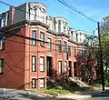 When these rowhouses were built c. 1880, Winter Hill was a fashionable residential area, populated by large two and three-family houses on generously sized lots. These buildings, among the first rowhouses built in the city, were built by Cutler Downer, a local real estate developer.[2] Similar rowhouses, not as well-preserved as these, were built in a few places elsewhere in the city, notably on Prospect Hill and Spring Hill.[3]