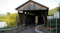Downsville Bridge is a wooden covered bridge over the East Branch of the Delaware River in the hamlet of Downsville in Delaware County, New York. Designed by Scottish immigrant Robert Murray, the bridge was built in 1854, and is a single span, timber and plan framed bridge. The bridge measures 174 feet (53 m) long and 19 feet (5.8 m) wide.[2]: 5