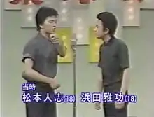 Matsumoto and Hamada received positive comments from older comedians in NSC, but went without a single chuckle from the audience, sometimes receiving insults from hecklers.[8] They organized performances of their sketches and routines by themselves, but could not get people to listen, even if tickets were free. Matsumoto describes these early years as hell, showing his immense frustration and stress during this period. They even considered quitting at one point.[9] Neither made enough money to live on their own, so they had to live with their parents, commuting to the city by train for performance opportunities. Ironically, Matsumoto had to search for a part-time job in a magazine printed by the printing company that he had originally been supposed to enter after graduating high school.