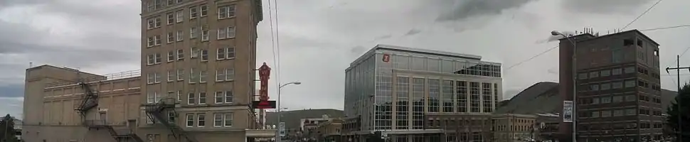 The Higgins and Front area of downtown is considered the center of downtown. It began to grow in the late 19th century, and has been growing since. In the early 20th century this part of downtown had electrified streetcars.[8] Its last run in the city was in January 1932.[8] Brick street's were replaced in the 1940s and 1960s.[8] This area has received national recognition for preserving historic properties.[8] Most of Missoula's main downtown buildings in the city are here. They include the Wilma Building, and Wilma Theatre. Others include the Millennium Building, the First Interstate Center (Missoula), the Florence Hotel, and the newly constructed Garlington Building (Missoula, Montana).
