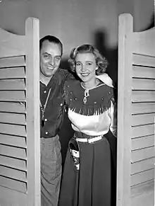 ![]() Alice Babs and director Gösta Bernhard during the filming | |
