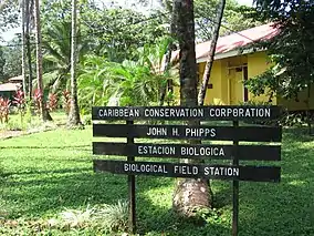 The refuge is located on the Caribbean shore, and is the site of the John H. Phipps Biological Station, which operates a sea turtle-tagging program among other research activities on its beaches, as well as the Casa Verde Visitor's Center.