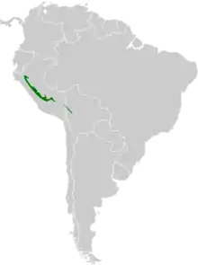 It is found in Bolivia and Peru. Its natural habitat is subtropical or tropical moist montane forests.
