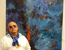 ![]() Dragan Sekaric Shex in front of his work "Voyage to Joy" | |