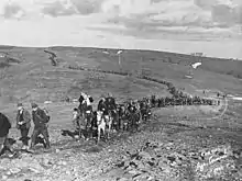 According to post-war Yugoslav sources, the Partisan Rasina detachment and the Chetniks' commander Keserović agreed to attack Kruševac together, on 23 September 1941.[6] On 24 September, Keserović's Chetnik detachment attacked German troops in the Kruševac district, killing 23 soldiers.[3] The fighting between attacking rebels and the Axis garrison had lasted for four days when Kosta Pećanac personally, with a large force of his Black Chetniks, came to release the Axis garrison.[7] The post-war Yugoslav sources blamed Keserović for the failure of the attack on Kruševac.[8] These sources accuse Kesrović of attacking German garrison earlier than agreed and of halting the attack when Partisan communist forces joined the attack.[9] At the end of September, Keserović and Radojević[10] published a printed flyer against Kosta Pećanac and signed it People's Liberation Movement of Chetniks and Partisans (Serbian: Народноослободилачка војска четника и партизана).[11] Pećanac sentenced Keserović and Radojević to death.[10]