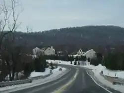 Dreahook is an unincorporated community in Readington Township in Hunterdon County, New Jersey, United States[2] at the intersection of CR-620/Dreahook Rd and CR 523. The name is a corruption of Driehoek (drie-three and hoek-corner, as in corners of a triangle), which is the Dutch word for triangle.[3] It was likely named for the triangle created by the settlement in its relation to the early roads to Flemington, Whitehouse Station, Readington Village and Pleasant Run, which have since been rerouted.[4] Dreahook Creek and Holland Brook both pass through the area of the former village. Dreahook village once had blacksmith shop, a school and a store. Settlers farmed the land here because of the rich soil along the base of Cushetunk Mountain.[4] There are still numerous farms in the area, including the Readington River Buffalo Farm between Dreahook and Stanton.
