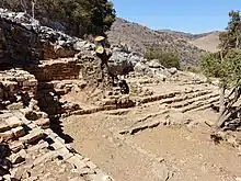 Two Eteocretan inscriptions on blocks of grey schist were excavated in 1936 by Pierre Demargne and Henri van Effenterre from the western part of the large cistern mentioned above.[3] These inscriptions were housed in the museum at Neapolis, but were lost during the Germano-Italian occupation of Crete during World War II.[4]