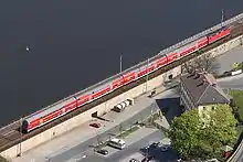 Between Dresden and Pirna were the upgrading of the existing tracks for S-Bahn operations at up to 120 km/h (75 mph) (the first stage of the construction of the Dresden S-Bahn; these tracks are now classified as part of the Pirna–Coswig railway) as well as the construction of two new long-distance railway tracks (for 160 km/h (99 mph)) were completed by 12 December 2004.[8]