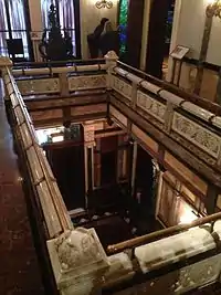The interiors are replete with marble, onyx, carved exotic and domestic woods, glazed tiles, and stained glass.[3][4] On display are original furnishings from the Nickerson era along with American and European decorative arts of the late 19th and early 20th centuries, including art nouveau furnishings and a number of works by Louis Comfort Tiffany.[5] The museum is named after its founder, the Chicago businessman, philanthropist, and art collector Richard H. Driehaus. The artworks on display in the museum are selections from the private Driehaus Collection of Fine and Decorative Arts.[3]