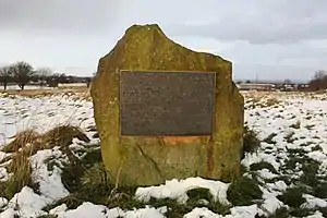 The village is also the site of the Battle of Adwalton Moor fought on 30 June 1643 in the First English Civil War between the armies of King Charles I and the Parliamentarians. The Royalist army under the Earl of Newcastle defeated the Parliamentarians under the command of Lord Ferdinando Fairfax and his son Sir Thomas. There are four commemorative stones with plaques depicting the battle at strategic points around the common and there is an information board on the wall of the community library.[5]