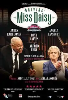 Driving Miss Daisy is a filmed performance of the 2013 Australian theatrical production of Alfred Uhry's Pulitzer Prize-winning 1987 play Driving Miss Daisy starring Angela Lansbury, James Earl Jones and Boyd Gaines, which was produced as a 2014 film by Broadway Near You (United States) in association with Umbrella Entertainment (Australia).