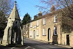 Aston End is a medieval house with additions and alterations made in the 16th, 17th and 19th centuries. It is built in an L-plan with coursed rubble walls of coal measures sandstone and a stone slated roof.[22] Chiverton House, originally called Dam Flatt House, dates from between 1692 and 1709 and has a flat symmetrical front with cross windows, a central gable and towers at each end.[23] It was altered in 1712 and the 19th century,[24] though not significantly.[23] The attached boundary walls, gatepiers and railings form part of its listing.[24] Dronfield Woodhouse Hall farmhouse was built in 1533, as suggested by dendrodating (by the University of Nottingham) and is a house of irregular layout, built from coursed squared coal measures sandstone with a stone slated roof. It was reworked extensively in the early 18th century, with further alterations in the 19th and 20th centuries.[25] The building north-east of The Hall on High Street is a former farm outbuilding that dates from the late 17th century, but it also contains a significant amount of an earlier timber-framed building, possibly a medieval hall. It is built in an L-plan with walls of coursed squared coal measures sandstone and a stone slated roof.[26] In 2004 it was in a poor state of repair and was gifted to the community; in 2015 it was restored and extended at a cost of more than £1.6 million, with over £1.25m provided by the Heritage Lottery Fund. It is now used as a heritage visitor centre and exhibition and community function space, with modern catering and cloakroom facilities.[27]