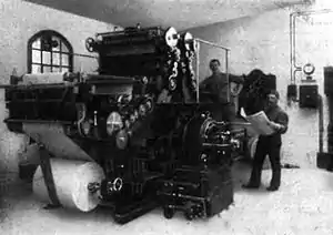 In the years 1921-1924 and 1935-1939, the printing house developed new areas of competence, such as offset printing, zincography, rotogravure, and became self-sufficient in equipment repair. This was made possible, among other things, by the acquisition in 1928 of a printing press housed in building adjacent to Bydgoszcz's jail facility at Parkowa street.[1] In 1936, the printing facility had more than 200 machines and employed around 280 people, which represented more than 60% of the employees of the printing industry in the former Pomeranian province. In 1939, the number of employees increased to more than 600 people.[4]