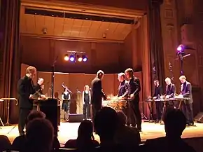 Drumming is a piece by minimalist composer Steve Reich, dating from 1970–1971.[1] Reich began composition of the work after a short visit to Ghana and observing music and musical ensembles there, especially under the Anlo Ewe master drummer Gideon Alorwoyie. His visit was cut short after contracting malaria. Classical music critic K. Robert Schwarz describes the work as "minimalism's first masterpiece".[2]