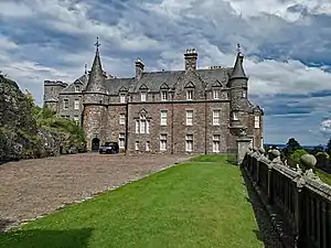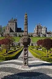 The castle was sacked by the army of Oliver Cromwell in 1653, during the Wars of the Three Kingdoms.[1] The 4th Earl of Perth was Lord Chancellor of Scotland under King James VII. He began the mansion house in 1689, before being imprisoned following the deposition of King James by William of Orange. He later fled to the exiled Jacobite court in France. The Drummonds continued to support the Jacobite cause in the Jacobite uprisings of 1715 and 1745. The family retained control of the estate until 1750 when the Drummond properties were declared forfeit and seized by the state. The estate was managed by the Commissioners for Forfeited Estates until 1784, when it was sold to Captain James Drummond (later created 1st Baron Perth). He began a number of improvements that were continued by his daughter Sarah and her husband, The 22nd Baron Willoughby de Eresby (1782–1865). These included the formal gardens and terraces in the 1830s. Queen Victoria visited the gardens in 1842.[1]