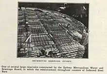 The Drummoyne Reservoir was built from 1910 to 1914.[5] The 1913 Handbook of the Metropolitan Board of Water Supply and Sewerage gives the following description: