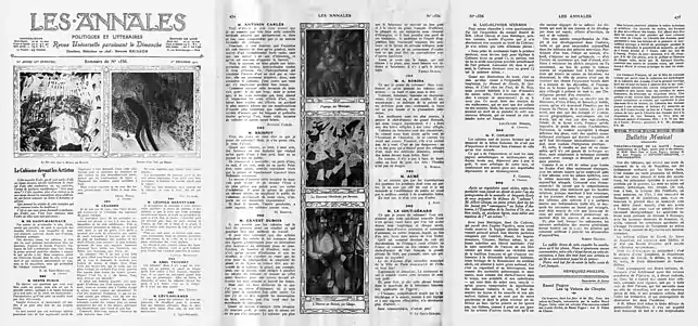 - Les Annales politiques et littéraires, Sommaire du n. 1536, 1 December 1912 (A30, T59, N1536), pp. 473 - 475. Gallica, Bibliothèque nationale de France