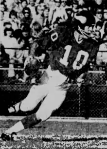 Roger Staubach, quarterback of the Dallas Cowboys from 1969–1979, was another early dual-threat quarterback; in 2012, Bleacher Report placed him sixth on their list of the greatest dual-threats of all-time.[22] The website noted Staubach "would run, juke, dive or underhand toss the ball in almost any situation."[22]