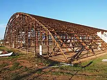 The three Bellman Hangars provide evidence of very early prefabrication techniques in use for buildings in Australia. The double hangar (building 70) and the two single hangars (buildings 2 and 3) were used as mixed- and bulk stores. The British design used a pitched roof and gabled steel frame to provide a standardised design for aircraft maintenance, with sliding doors at each end allowing maximum access. Internal lighting is by high level, clerestory windows.[8] During World War II steel was considered an essential material for armaments and, although steel was available for buildings, many Bellman Hangars were constructed with a framework of unseasoned Australian hardwood.[1][16]