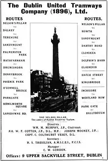 - The North Dublin Street Tramways Company (NDST), formed 1875, with a line from Nelson's Pillar to Drumcondra commencing in 1877[7]
