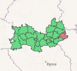 Dubyonsky District (Russian: Дубёнский райо́н; Erzya: Тумобуе; Moksha: Дубёнкань аймак) is an administrative[1] and municipal[6] district (raion), one of the twenty-two in the Republic of Mordovia, Russia. It is located in the east of the republic. The area of the district is 896.9 square kilometers (346.3 sq mi).[3] Its administrative center is the rural locality (a selo) of Dubyonki.[2] As of the 2010 Census, the total population of the district was 13,851, with the population of Dubyonki accounting for 24.0 % of that number.[4]