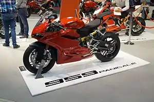 The Ducati 959 Panigale is a 955 cc (58.3 cu in)[3] sport bike manufactured by Ducati as the successor to the 898 cc (54.8 cu in) 899.[4][5] The motorcycle is named after the small manufacturing town of Borgo Panigale. It was announced in 2015 for the 2016 model year.