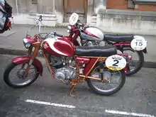 The 125 Bronco was a tubular steel/full-duplex-framed, base model motorcycle made by Ducati from 1960 to 1966, produced mainly for American distributor Berliner Motor Corporation.[2] It was the second to last example, before the Ducati 125 Cadet/4,[3] of Ducati pushrod technology which began in 1952 with the pressed-frame Ducati 98 models, which themselves had followed the Cucciolo T3, pull-rod (Ducati 60) and pushrod (60 Sport, 65 Sport, 65T Tourist) design singles.