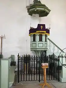 Augusta was buried under the floor of Kullamaa church.[32] On her tombstone is the text: "Hic jacet in pace Augusta Carolina Friderica Luisa Ducis Brunsuicencis-Guelferbytani Filia Friderici Guilielmi Caroli Ducis Vurtembergensis et Supremi Praefecti Viburgiensis Uxor Nat. d. III. Dec. MDCCLXIV Denat. d. XIV. Sept. MDCCLXXXVIII"[33][34] The date is false - it should have been XVI September. Over the years, her coffin decayed, causing her bones to get lost in the bottom of the deep crypt. Her tombstone is still in the church, albeit in a different position, surrounded by an iron rail.[35]