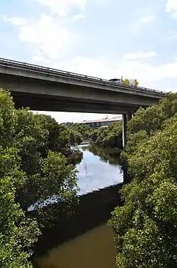 ![]() Duck River in Clyde, passing under the M4 Western Motorway | |