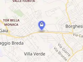 Due Leoni-Fontana Candida is a station of Line C of the Rome Metro. It is located along the Via Casilina, on Via della Stazione Due Leoni. The previous train station of the Rome–Pantano railway line closed in 2008 and was totally rebuilt into the current Metro station; the stop was opened on 9 November 2014.