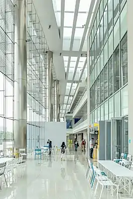 The campus is being constructed in phases, with Phase I designed by American design and architecture firm Gensler.[27] Phase 1 facilities include an academic building with a variety of classroom configurations, a 200-bed dormitory building, a conference center and hotel, a faculty residence, and an administration building. An innovation center equipped with a library, classrooms and team rooms was opened in 2019.