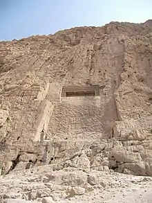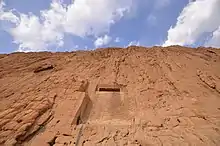 Dukkan-e Daud (or David's Store), is a late Achaemenid rock site located in the vicinity of Sarpol-e Zahab, in Kermanshah Province, Iran. The site was discovered by Henri Rawlinson in 1836. It consists of a rock tomb dug several meters high in a rock face overhanging a relief called Kil-e Daud (or David's tomb).[1]